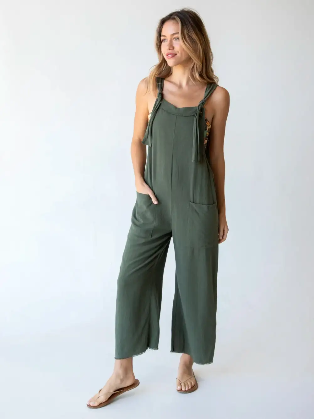 The fun utility vibe! The deep V-neck on the back! Its easy, adjustable straps that tie in the front! And it has pockets!