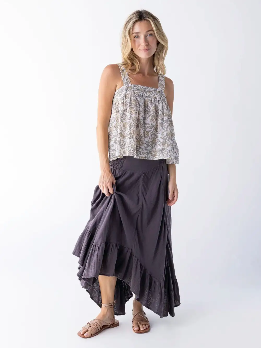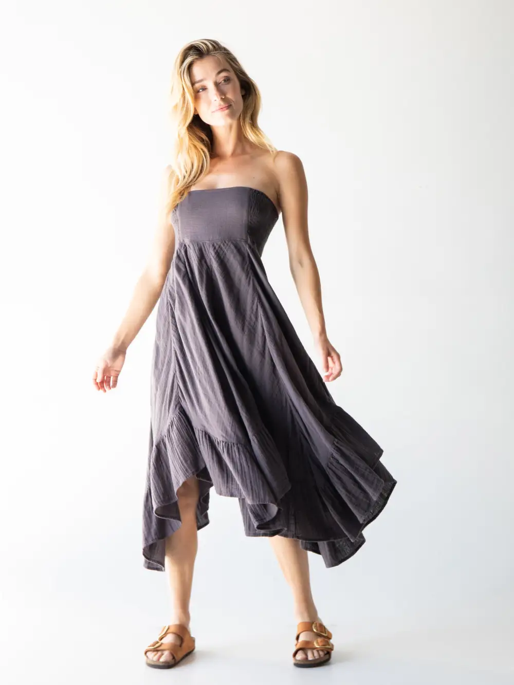 Feelin' Alive Convertible Cotton Midi Skirt - Charcoal