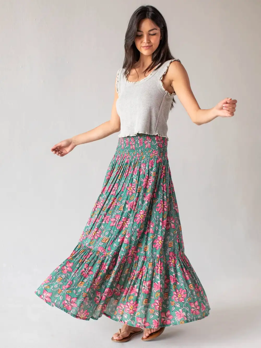 The beautiful print! The comfy, smocked top & fun, billowy fit! AND you can wear it as a dress!