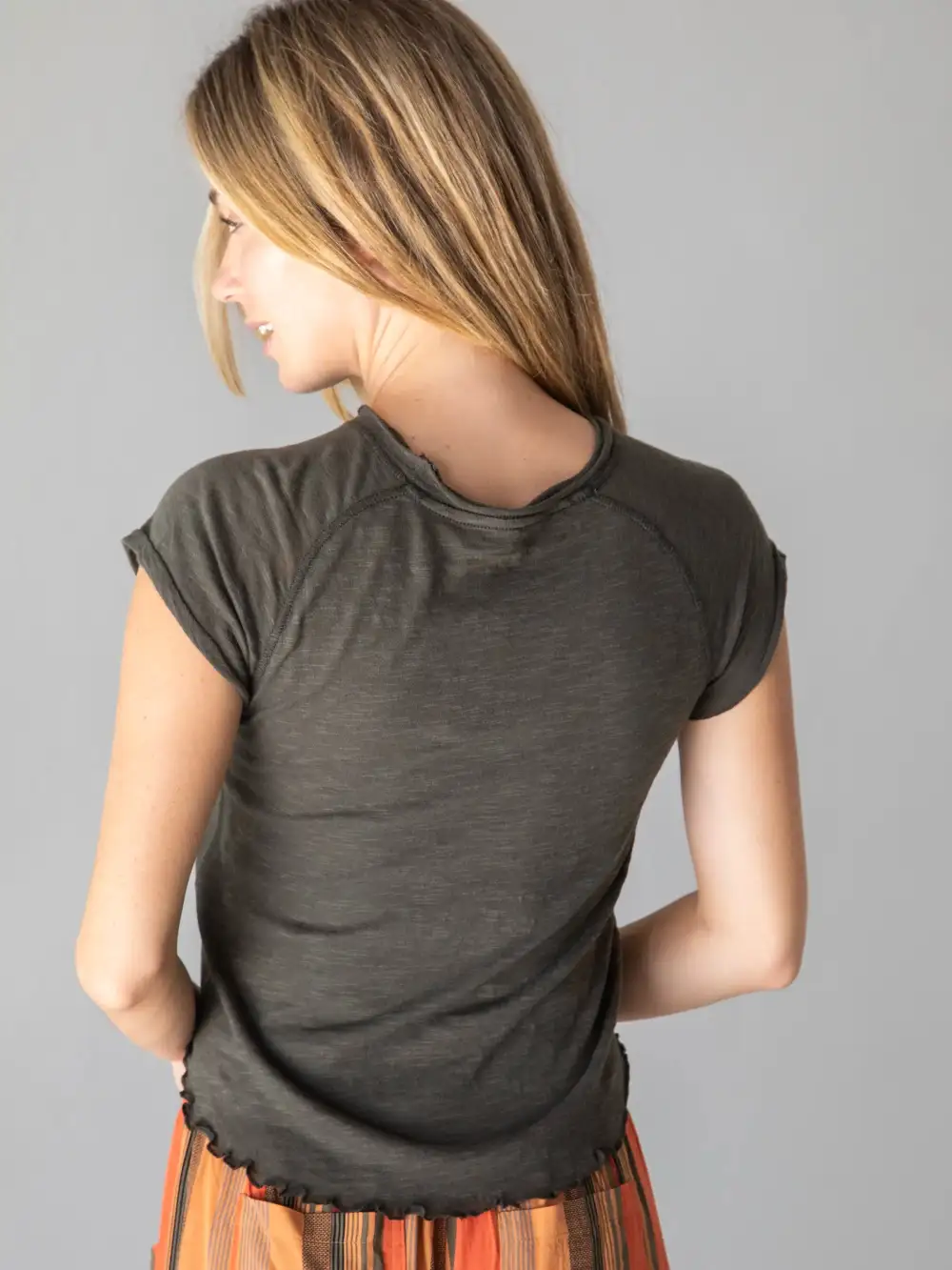 Lily Cotton Short Sleeve Tee Shirt - Charcoal