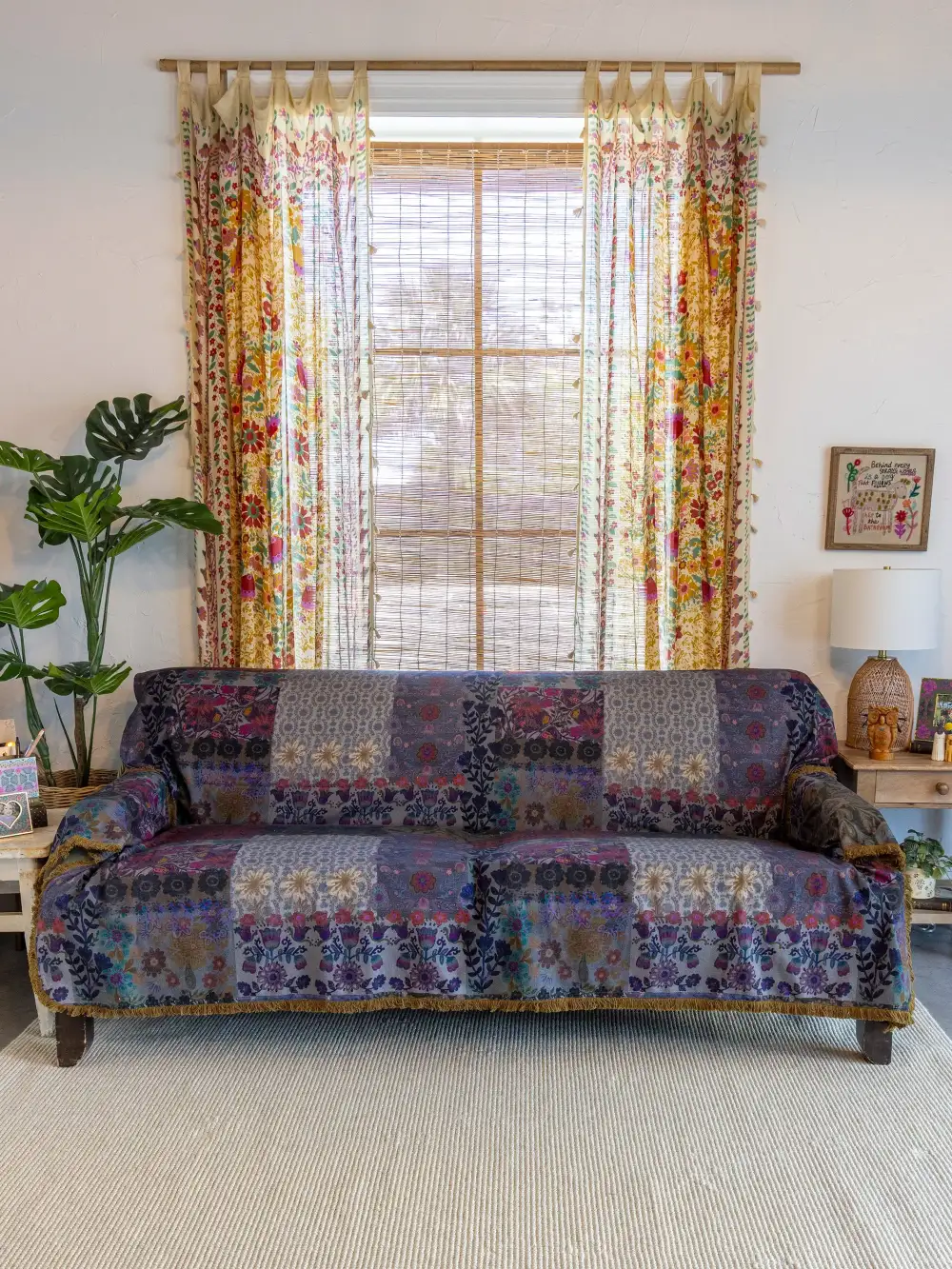 The easiest & cutest way to refresh your old, ugly sofa! The fun prints & fringe trim make this sofa cover extra special!