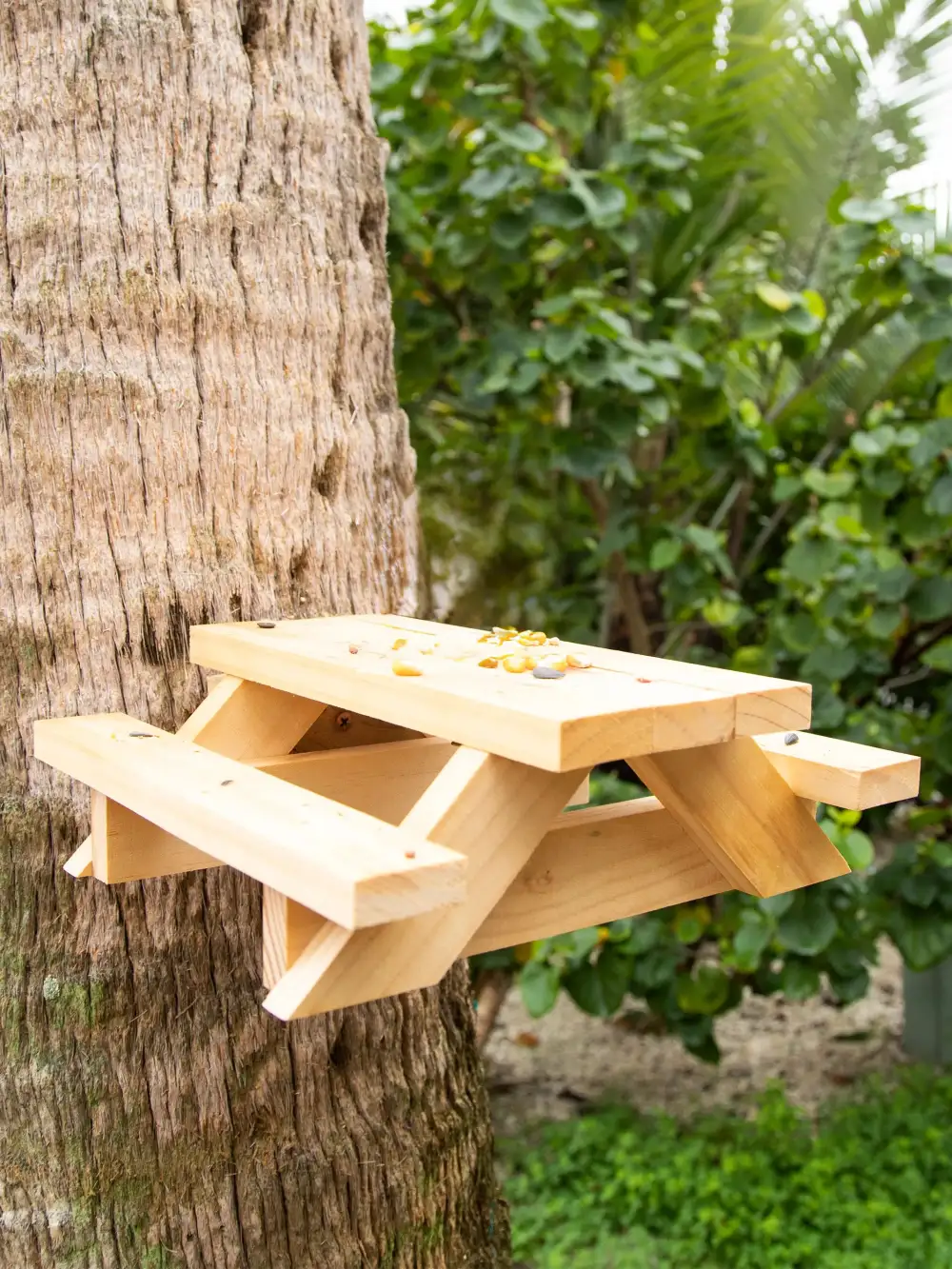 It's too fun to sit on our porch and watch squirrels eat corn on this adorable mini picnic table! Our dogs love it too!
