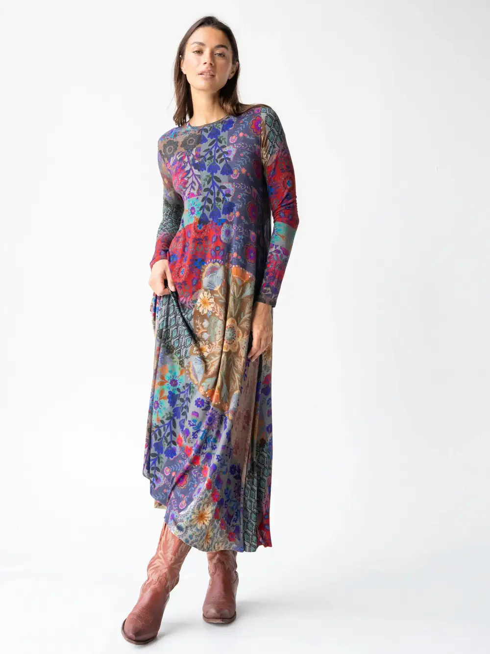 Frankie Knit Cotton Tee Midi Dress - Pink Red Floral