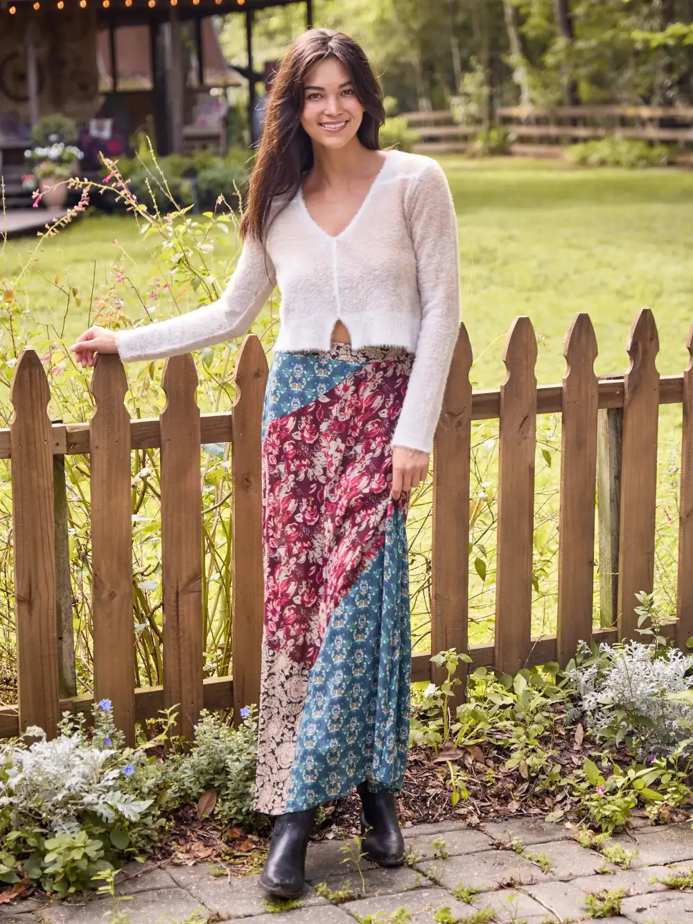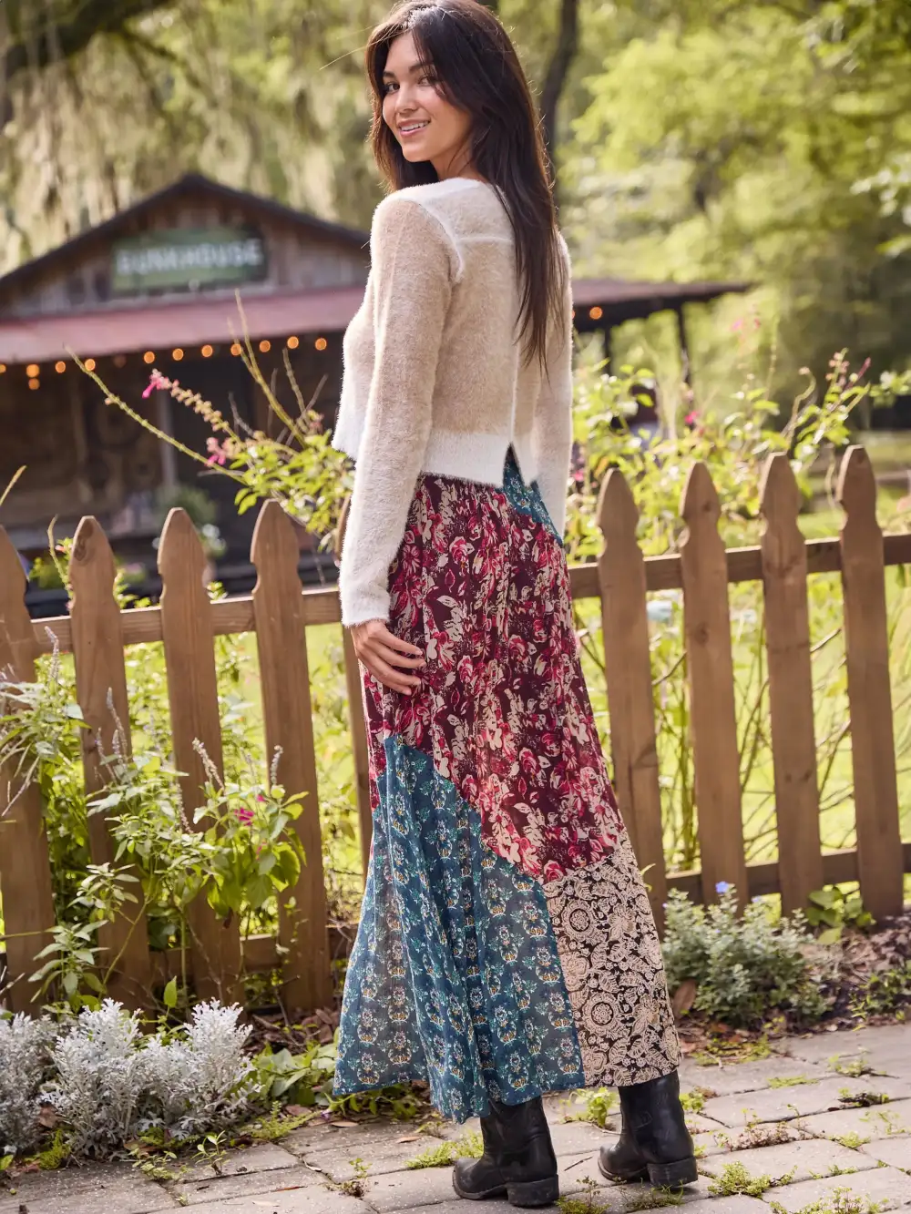 Come Together Maxi Skirt - Plum Turquoise Mixed Floral