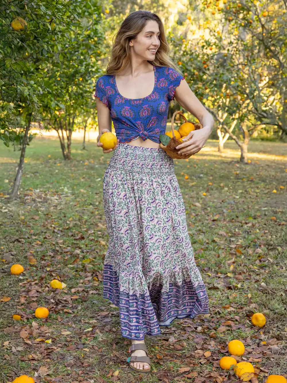 Flora Cotton Convertible Maxi Skirt - Purple Fan Floral