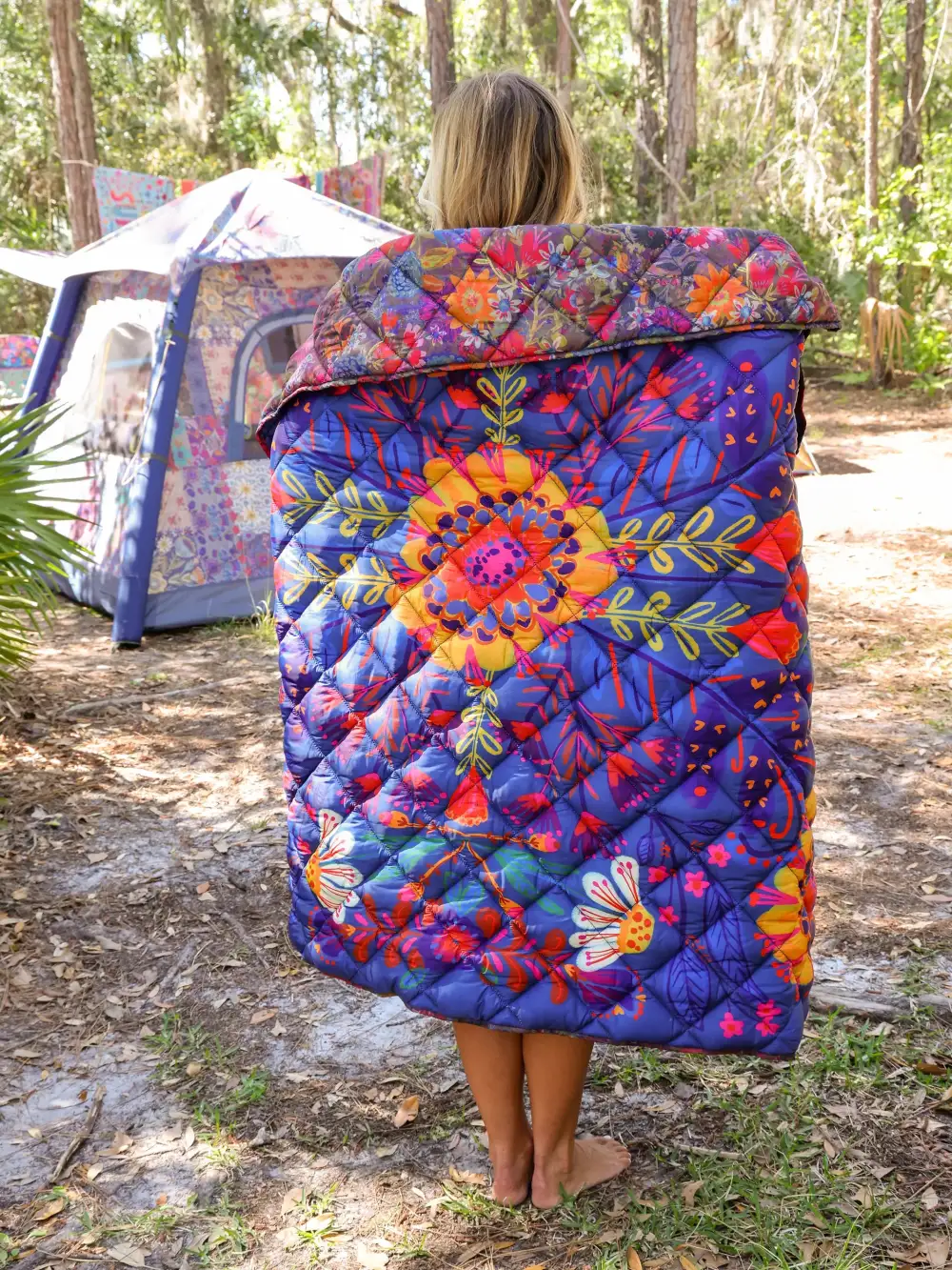 The prettiest camp blanket ever��It��s like a sleeping bag without a zipper!