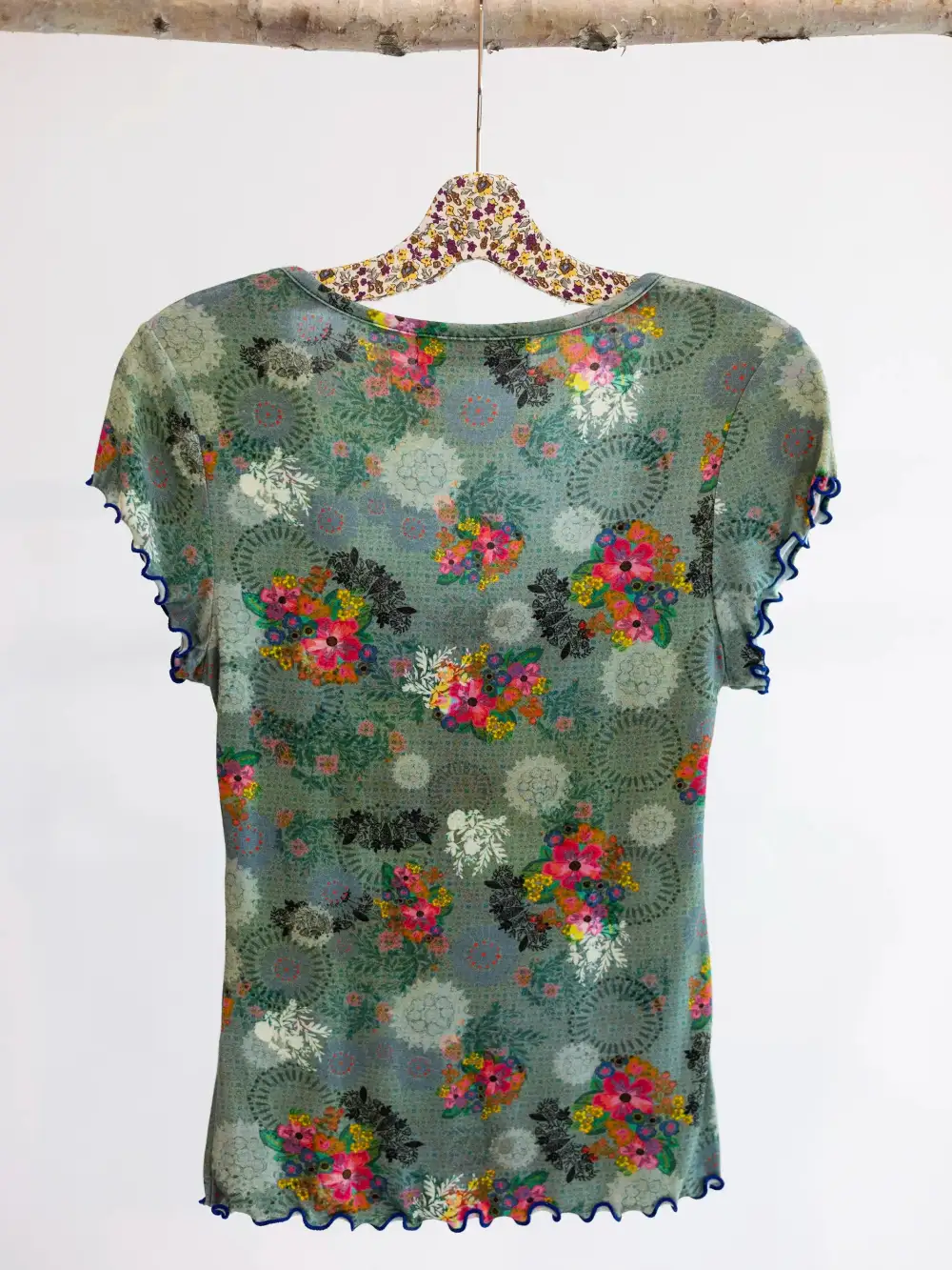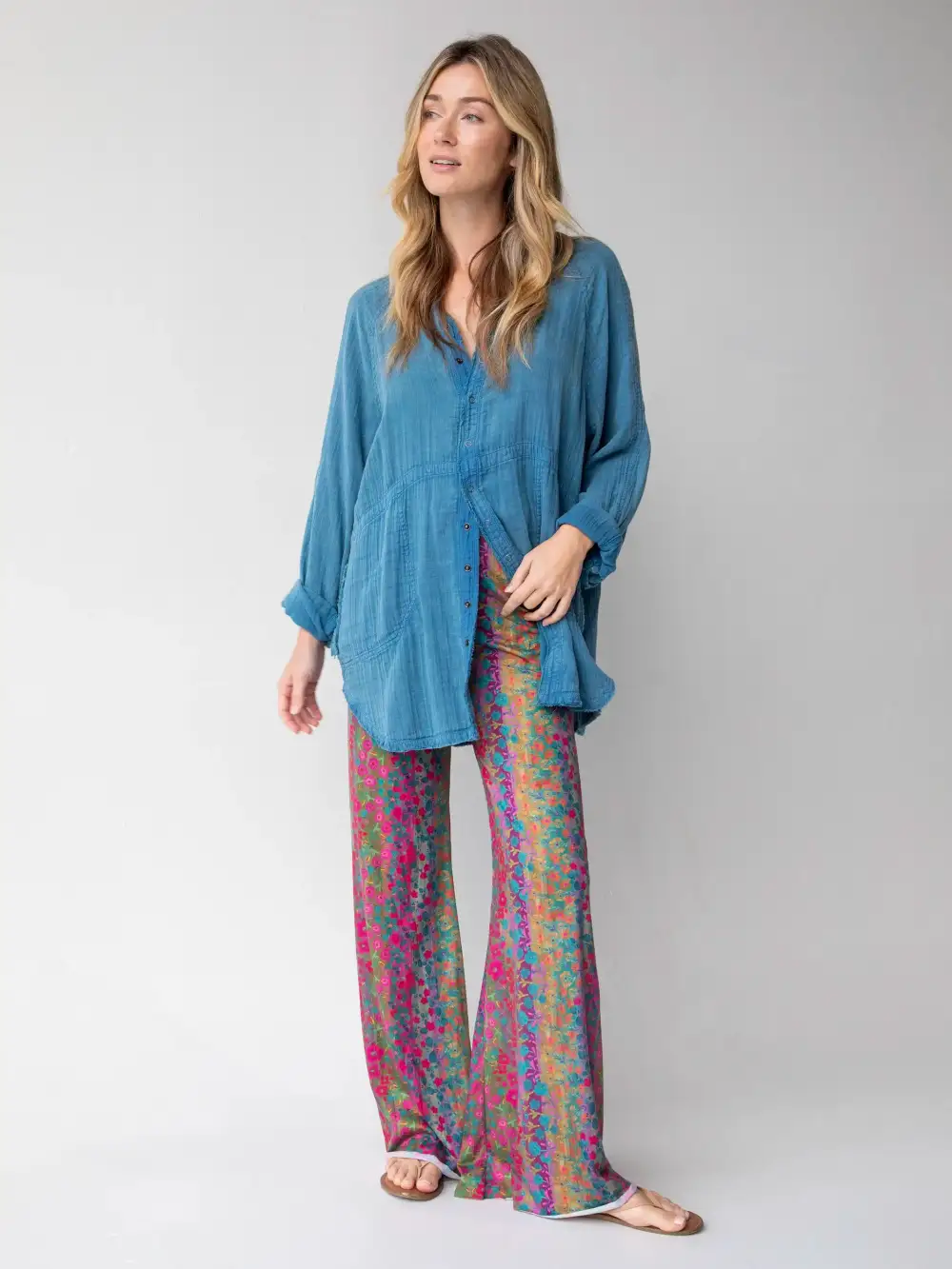 Kelly Oversized Cotton Button Down - Blue Floral Vines