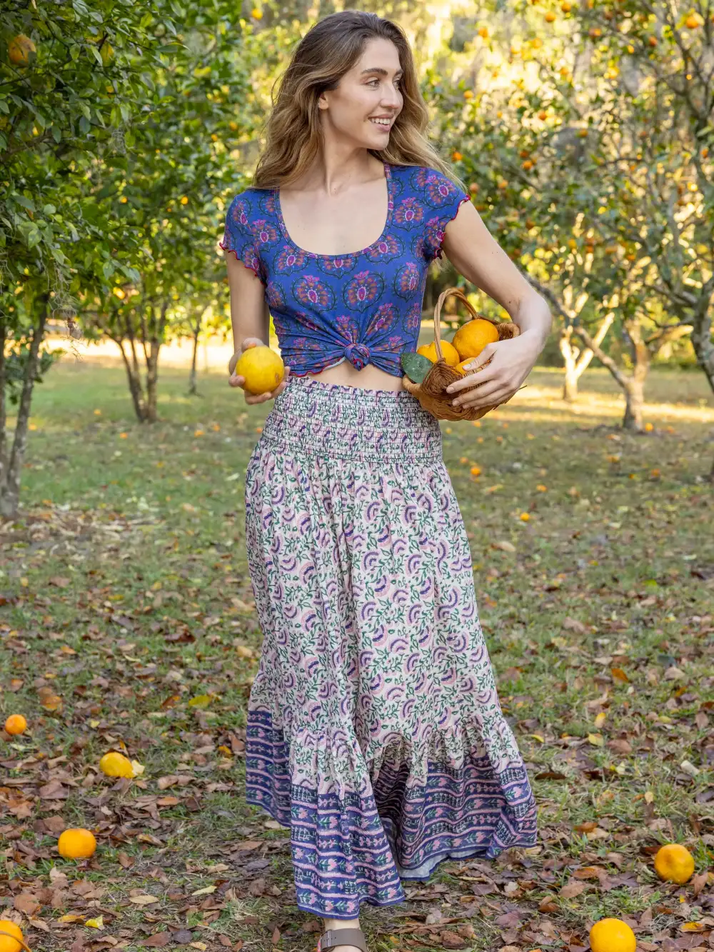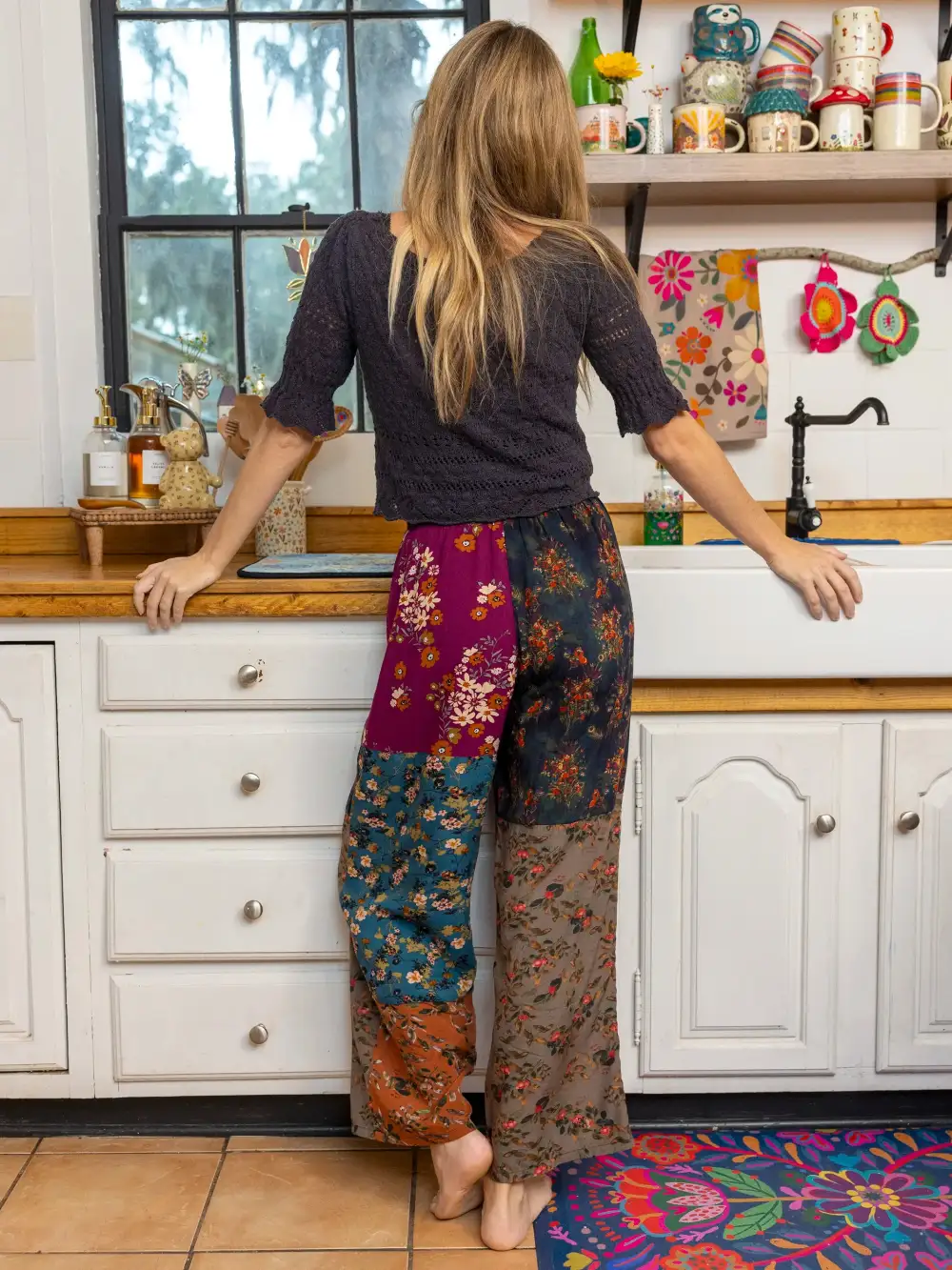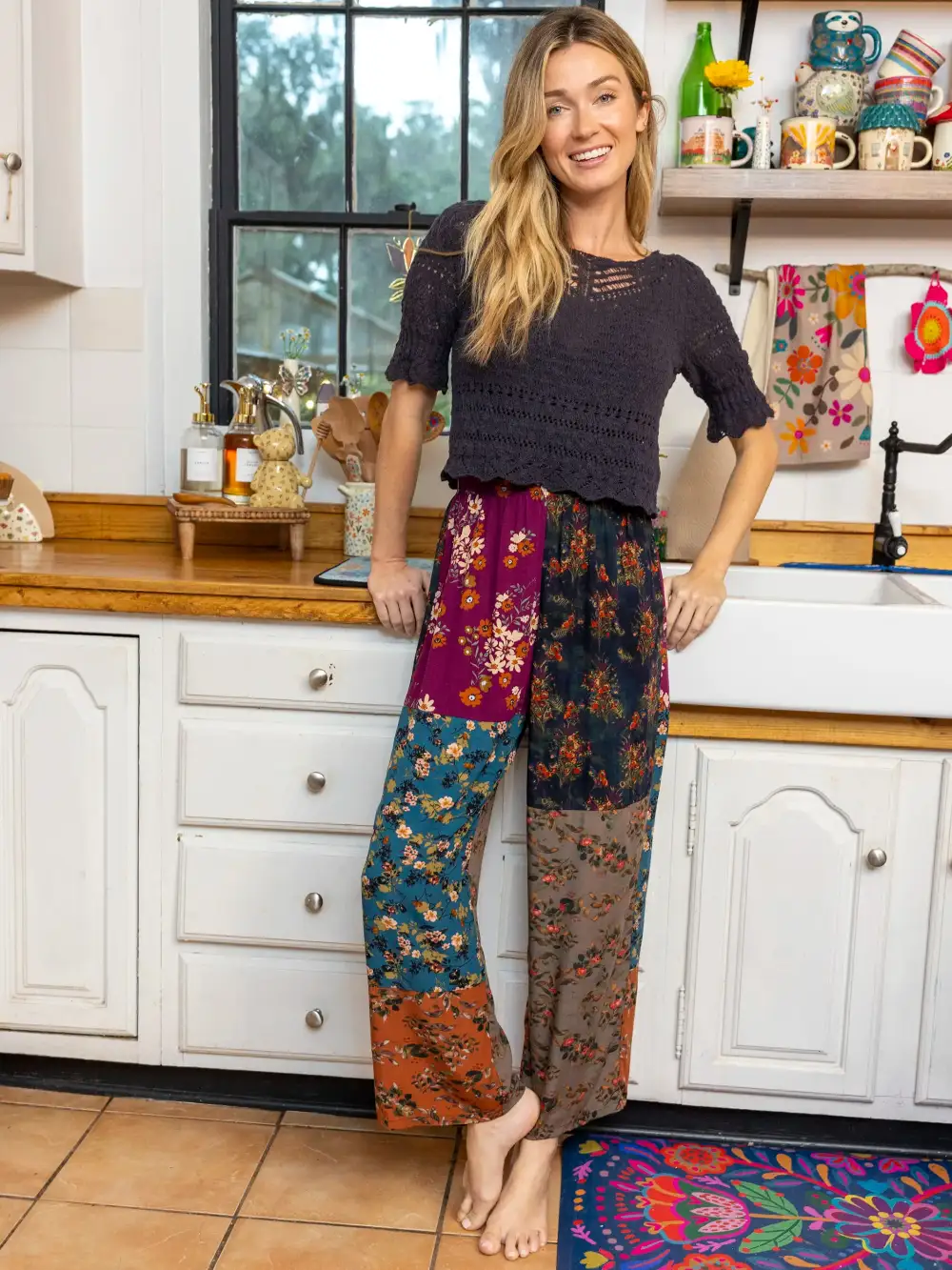 Mimi Pant - Rust Teal Mixed Floral